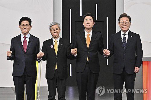 (서울=연합뉴스) 임형섭 기자 = 6·3 조기 대선에 출마한 각 당 대선 후보들이 18일 중앙선거관리위원회가 주관하는 첫 TV 토론에 출연해 각자의 정책 비전을 설명하며 지지를 호소했다.