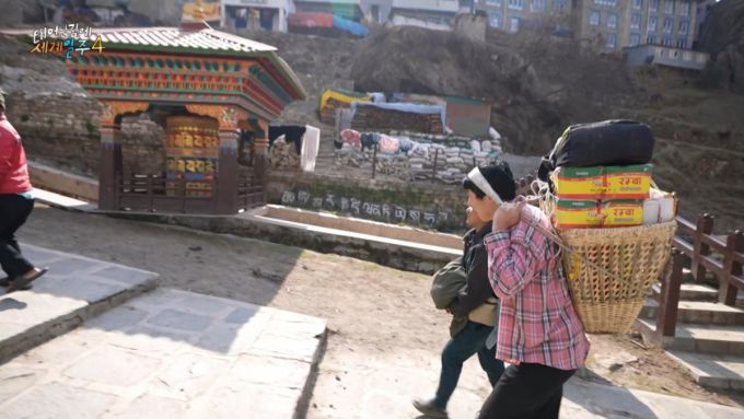 기안84가 30kg의 큰 짐을 들고 에베레스트 관문에 도착했다.