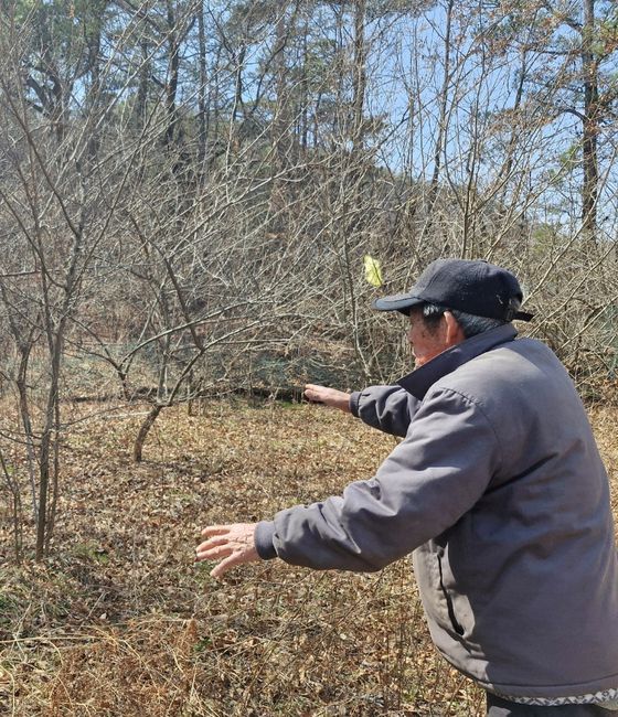 지난 3월 11일 전남 순천시 서면 학구삼거리 매실밭에서 마을 주민 박윤석(88)씨를 만났다. 그는 유병언 전 세모그룹 회장 시신의 최초 발견자다. 박씨는 지금도 사체가 유병언이 아니라고 믿고 있었다.