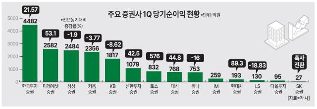 올해 1분기 국내 증권사 실적 발표에서 뚜렷한 명암이 갈렸다. 미래에셋증권과 한국투자증권 등 일부 대형사들이 실적 호조를 기록한 반면 KB증권·하나증권·키움증권 등은 전년 동기 대비 수익성이 악화됐다. 이와 함께 지난해 극심한 부진을 겪었던 중소형사들이 흑자 전환에 성공하며 주목을 받고 있다.