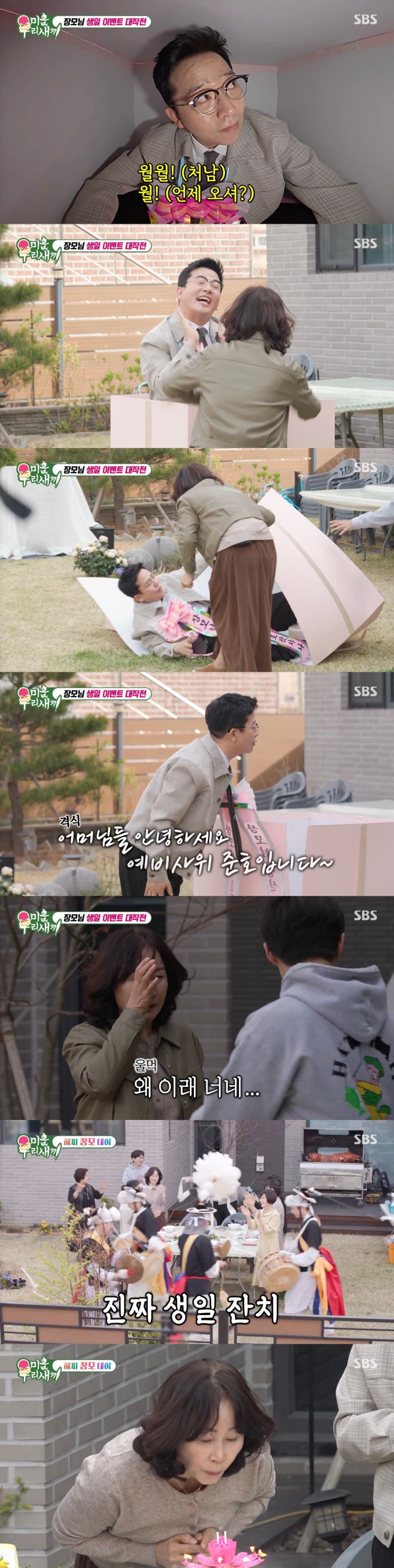그리고 생일 파티를 위해 통돼지 바비큐도 준비했다고 밝혀 모두를 놀라게 했다. 이에 예비 장모는 "왜 안 하던 짓을 하고 이래"라면서도 감동받아 눈시울을 붉혔다.