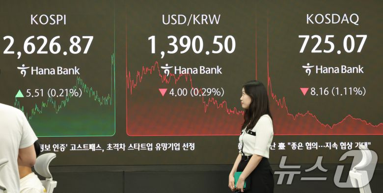 서울 중구 하나은행 본점 딜링룸 전광판./뉴스1 ⓒ News1 허경 기자 |