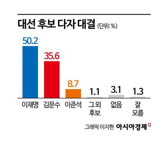 이재명, 50.2% 기록하며 '독주'…김문수, 지지율 올라 35.6% '추격'[폴폴뉴스]
