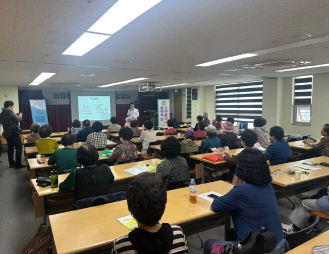 이 강좌는 지역 내 대학병원 2개소와 협업, 만성질환의 예방 및 관리를 주제로 총 7회 운영한다. 1차 강의는 대한노인회 의정부시지회와 연계해 '알기 쉬운 만성질환 관리'를 주제로 진행했다.