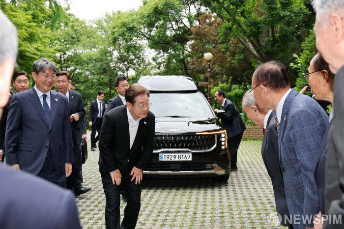 [서울=뉴스핌] 윤창빈 기자 = 이재명 더불어민주당 대선후보가 19일 서울 용산구 임정로 대한노인회 중앙회를 방문, 고개숙여 인사하고 있다. 2025.05.19 pangbin@newspim.com |