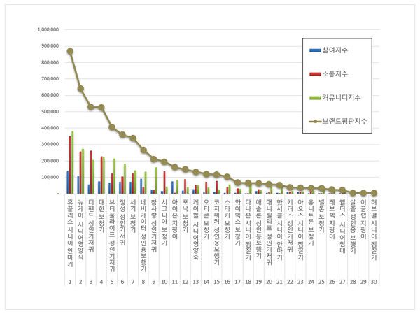 한국기업평판연구소는 국내 소비자에게 사랑받는 시니어 제품 브랜드 30개에 대한 브랜드 빅데이터 평판분석을 했다. 2025년 4월 19일부터 2025년 5월 19일까지의 시니어 제품 브랜드 빅데이터 5,653,973개를 분석했다. 지난 4월 시니어 제품 브랜드 빅데이터 3,732,078개와 비교하면 51.50% 증가했다.