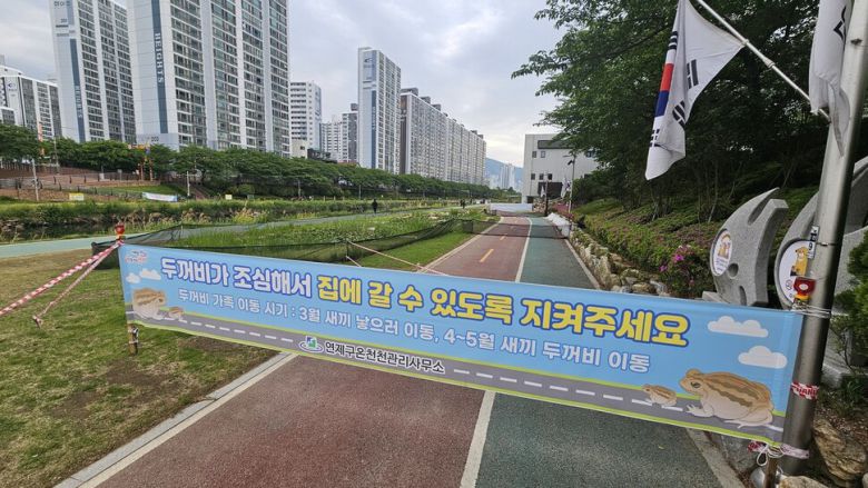 환경보호 활동가인 최대현 수영강사람들 대표는 “도심에서 두꺼비를 쉽게 관찰할 수 있다는 게 굉장한 일이다. 로드킬 방지를 위해 산책로 등을 막아 불편함이 있겠지만, 더불어 살아가는 생명체를 보호하고 살린다는 마음으로 시민들이 함께 힘을 보태줬으면 한다”고 당부했다.