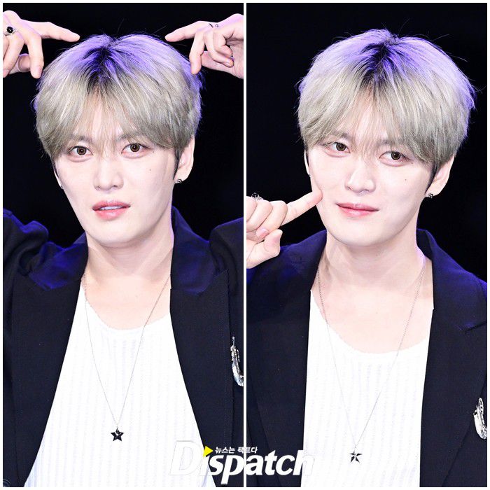 김재중은 화이트 티셔츠와 블랙 재킷, 와이드진으로 깔끔한 스타일링을 연출했다. 조각같은 비주얼과 스윗한 미소도 돋보였다.