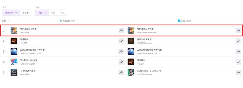 [최진홍 기자] 넷마블(대표 김병규)의 신작 수집형 RPG <세븐나이츠 리버스>(개발사 넷마블넥서스)가 출시 5일 만에 국내 양대 앱 마켓인 구글플레이와 애플 앱스토어 매출 1위를 동시에 달성하며 강력한 흥행세를 보이고 있다.