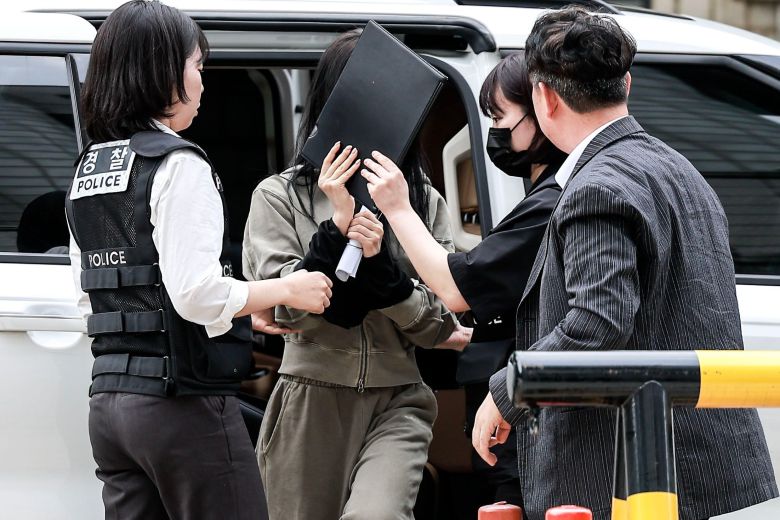 축구 국가대표팀 주장 손흥민의 아이를 임신했다고 주장하며 손흥민에게 돈을 뜯어내려 한 20대 여성 양모씨(왼쪽)가 17일 영장실질심사를 받기 위해 서울중앙지법에 들어서고 있다 /연합뉴스 |