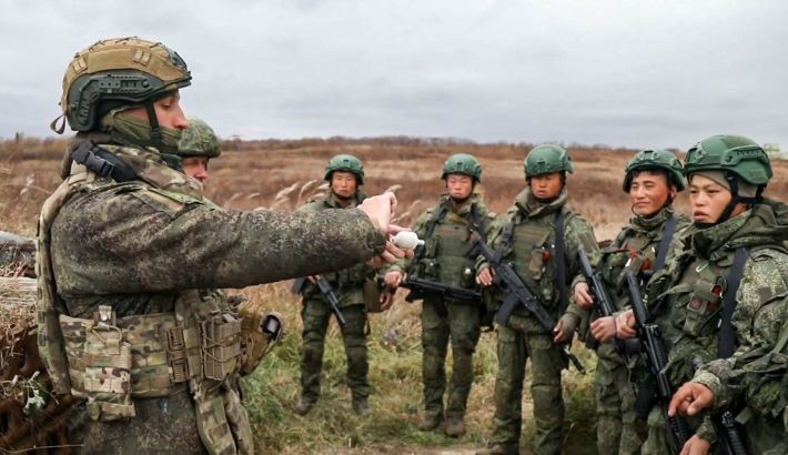 지난달 러시아 교관으로부터 훈련받는 북한 군인들. 연합뉴스 |