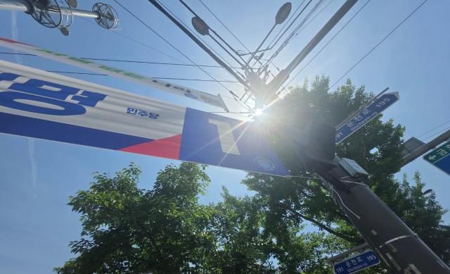 18일 광주 서구 운천역에 걸려 있는 후보들 공보물. [사진=신진영 기자] |