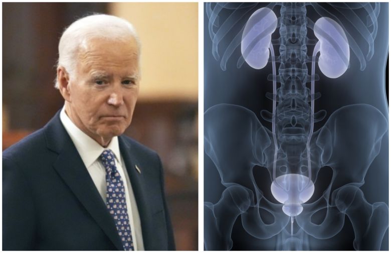 전립선암은 고령에서 많이 발생하고, 유전적 소인, 남성호르몬의 영향, 서구식 식이 습관 등이 원인으로 꼽힌다. 사진은 조 바이든 전 미국 대통령과 전립선 이미지. 연합뉴스, 게티이미지뱅크