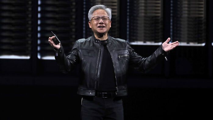 ▲ 19일 타이완 타이베이에서 열린 '컴퓨텍스 2025' 전시회에서 엔비디아의 젠슨 황 사장 겸 CEO가 연설하고 있다.