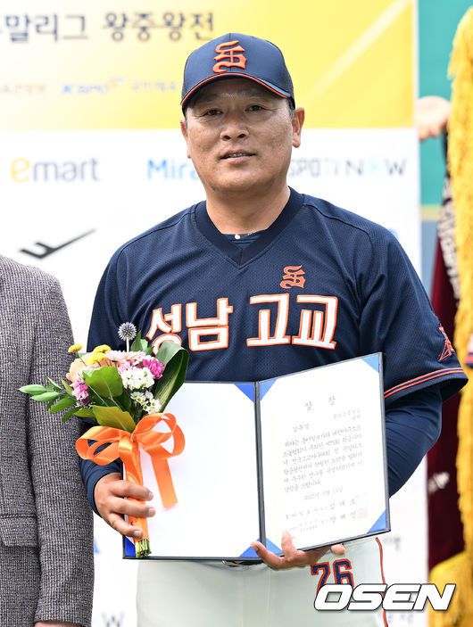 [OSEN=목동, 이대선 기자] 성남고는 19일 목동야구장에서 열린 '제79회 황금사자기 전국고교야구대회 겸 주말리그 왕중왕전’ 결승전에서 유신고에 10-4로 승리했다. 성남고는 1964, 1970년에 이어 55년 만에 황금사자기 우승을 차지했다. 감독상을 수상한 성남고 박혁 감독이 기념촬영을 하고 있다. 2025.05.19 /sunday@osen.co.kr 이 기사의 카테고리는 언론사의 분류를 따릅니다.0공유하기