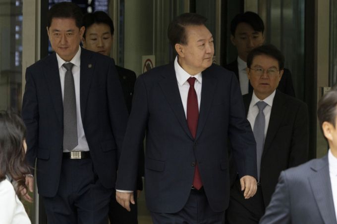 윤 전 대통령은 지난 12일 재판에 이어 두 번째로 지하 주차장이 아닌 지상 출입구를 통해 법정에 출석했다. 다만 지난 재판에 이어 이번에도 포토라인을 지나며 취재진들의 쏟아지는 질문을 받고 아무런 답변을 하지 않았다.