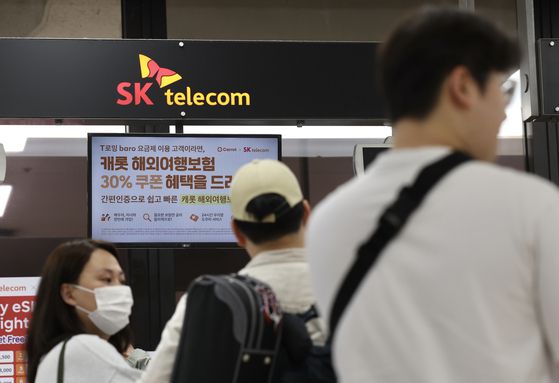서울 강서구 김포국제공항 SK텔레콤 로밍센터에서 이용객들이 유심 교체를 위해 대기하고 있다. 뉴시스 |