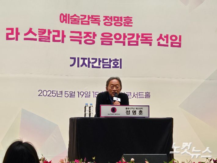 부산콘서트홀 정명훈 예술감독은 19일 오후 부산콘서트홀에서 기자회견을 열고 '라 스칼라' 수장에 오른 소회를 밝혔다. 1시간 가까이 이어진 기자회견 동안 그는 라 스칼라 극장 사장과 단원 등에 대한 애정을 숨김없이 고백했다.