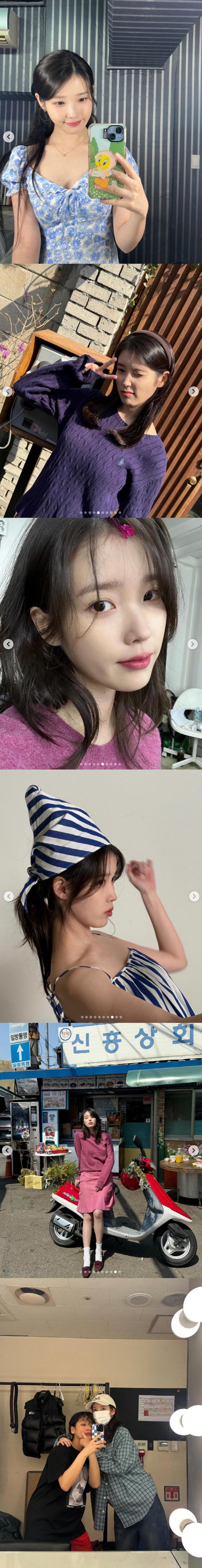 아이유는 19일 자신의 계정에 "HAPPY IU MONTH(?) feat. 꽃갈피 셋"이라는 글과 함께 근황을 담은 사진 여러 장을 게재했다.