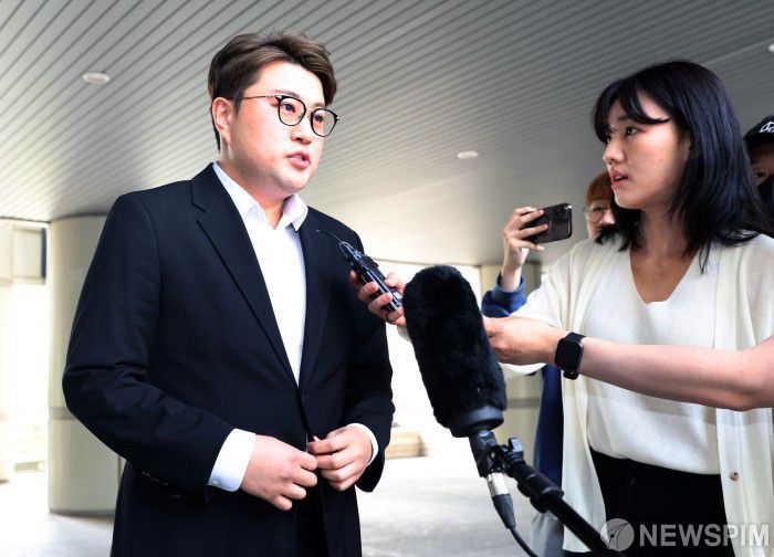 음주 상태로 운전하다 뺑소니 사고를 낸 혐의로 재판에 넘겨진 트로트 가수 김호중(34) 씨에게 실형이 확정됐다. 사진은 김씨가 지난해 5월 24일 오전 서울 서초구 서울중앙지방법원에서 열린 구속 전 피의자 심문(영장실질심사)에 출석하며 취재진 질문에 답하는 모습. [사진=뉴스핌 DB] |