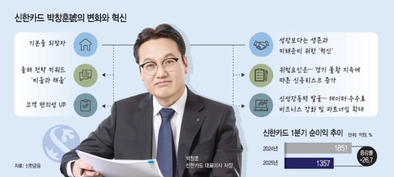 박 사장이 기본을 강조하는 건 수익성 악화 위기에 놓였기 때문이다. 올해 1분기 신한카드의 순이익은 1347억원으로 전년 동기(1851억원) 대비 26.7% 감소했다. 대손충당금 등이 늘어난 여파지만, 순이익 감소에 대한 위기감은 크다. 단순히 신한카드만의 문제라기 보다는 카드업계가 놓인 위기 상황 때문이기도 하다. 내수 부진으로 카드사의 본업인 신용판매업은 성장세를 기대하기 어렵고 신성장동력 발굴도 쉽지 않은 상황이다. 박 사장이 성장보다는 '생존과 미래준비를 위한 혁신'을 올해의 중요한 화두로 꼽는 배경이다.