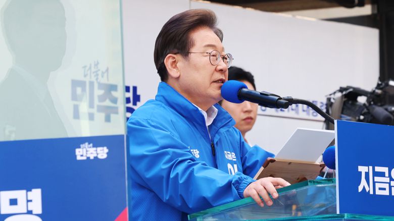홍대 간 이재명 "청년에 희망"…연단엔 '방탄 유리막' 등장