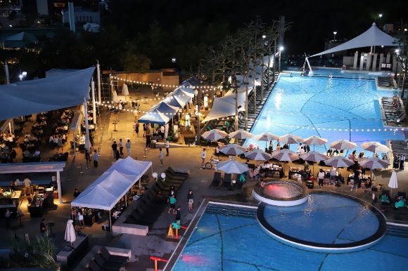 투숙객과 회원 중심으로 운영되던 야외 수영장 오아시스를 특별히 개방해 아티스트들의 라이브 공연과 함께 봄밤을 수놓으면서다. 지난 17일 오후, 비가 내렸지만 오아시스에선 와인을 즐기려는 이들로 붐볐다.