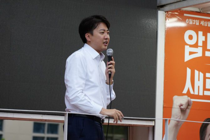 19일 오후 광주 북구 전남대학교 후문에서 유세를 펼치고 있는 이준석 개혁신당 대통령 선거 후보.(사진=개혁신당) |