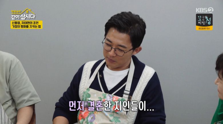 더불어 그는 "몇 살 차이냐고 하셨지만 나이가 의미가 아무것도 없다. 살아보니까"라고 말했고, 윤다훈은 "남자가 항상 철부지 같고 그렇다"며 공감했다.