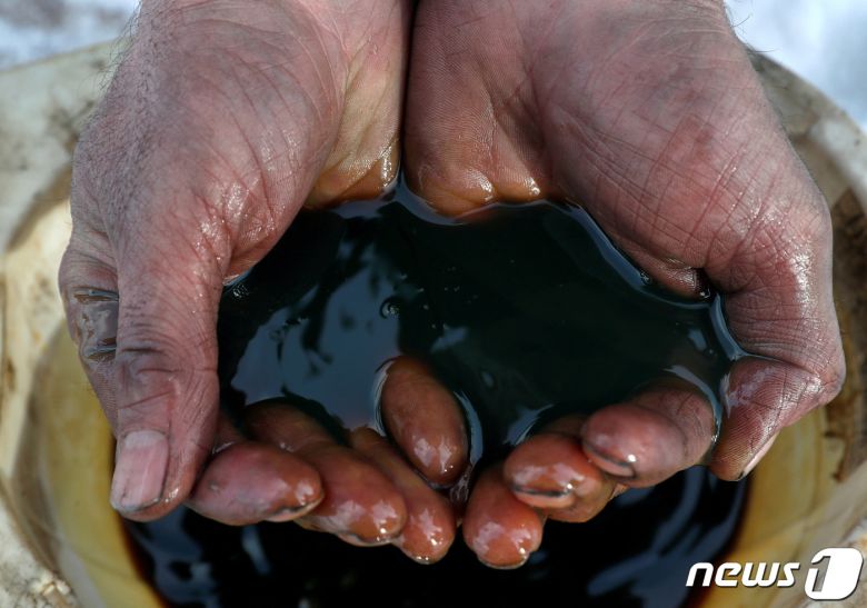 러시아 이르쿠츠크 지역에 있는 이르쿠츠크 석유회사 소유의 야락타 유전에서 한 직원이 원유 샘플을 들고 있는 모습 로이터/바실리 페도센코/파일 사진 ⓒ 로이터=뉴스1 ⓒ News1 신기림 기자 |