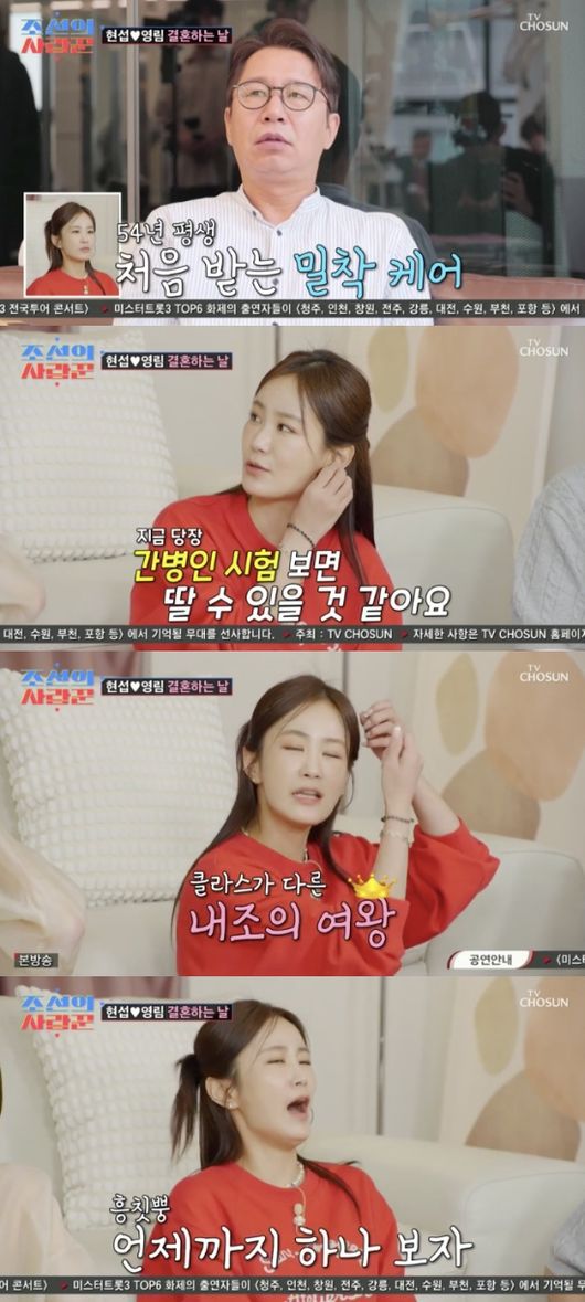 심현섭은 “처음엔 귀찮았다. 옷을 어떻게 입었는지 사진을 찍어달라고 하더라. 일생을 간섭을 안 받고 살았다. 이제 (정영림의 행동이) 이해가 된다. ‘신경 쓰는구나’ 영림이라 코털정리기도 가지고 다닌다. 자기가 신경을 써야 한다더라.