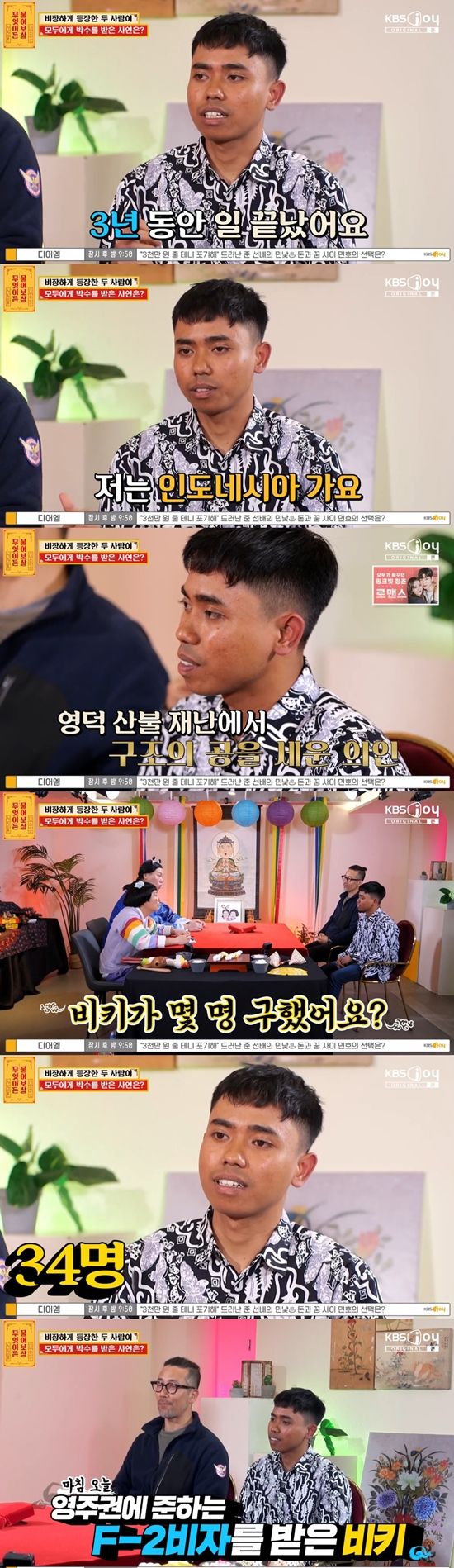 19일 방송된 KBS Joy ‘무엇이든 물어보살’ 317회에는 영덕 산불 재난에서 공을 세운 의인과 함께 일하고 있는 선주가 출연했다.