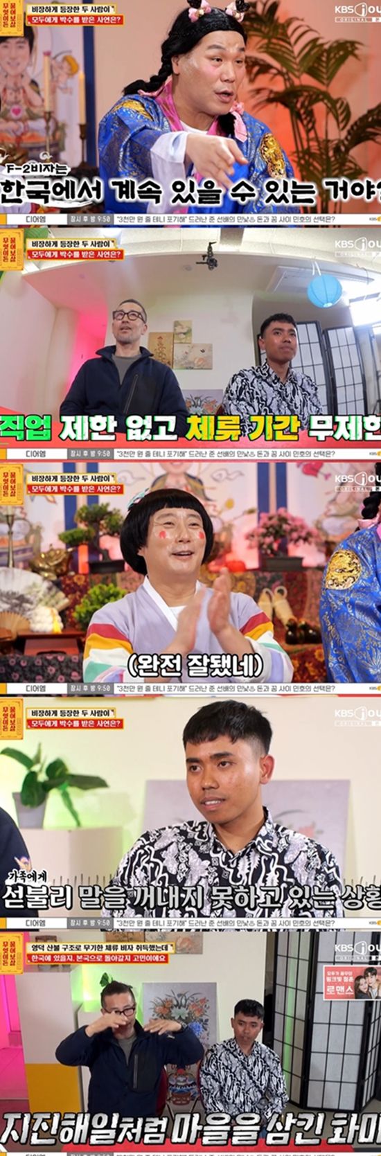 이어 그는 "원래는 (의인의) 비자 기간이 만료돼서 인도네시아로 돌아가야 하는데, 이번에 어르신들을 구한 공으로 한국에 있고 싶을 때까지 있을 수 있는 비자가 나온 거다"라며, "의인은 한국에 장기 체류한다는 쪽으로 마음이 기울었지만 아빠를 어떻게 설득할지 고민하고 있다"고 의인의 고민을 대신 전했다.