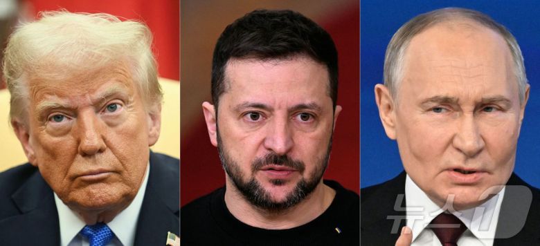 도널드 트럼프 미국 대통령(왼쪽부터), 볼로드미르 젤렌스키 우크라이나 대통령, 블라디미르 푸틴 러시아 대통령. ⓒ AFP=뉴스1 ⓒ News1 류정민 특파원
