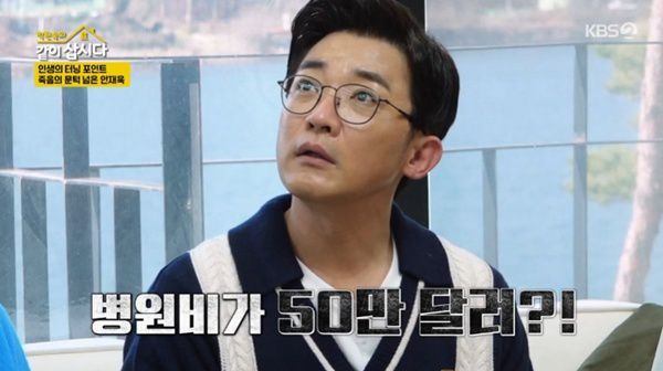 더불어 안재욱은 퇴원 할 때 병원비가 당시 한화로 약 5억 원이 나왔다는 걸 알았다며 "다시 쓰러질 뻔했다, 퇴원 못 할 뻔했다"라고 고백했다. 안재욱은 "미국에서는 수술 후 병원비를 수납한다, 병원비를 조율하고 수납하는 데 2년 걸렸다"라며 의료 전문 변호사와 함께 의료비를 절반 이하로 줄였다고 비화를 전했다.