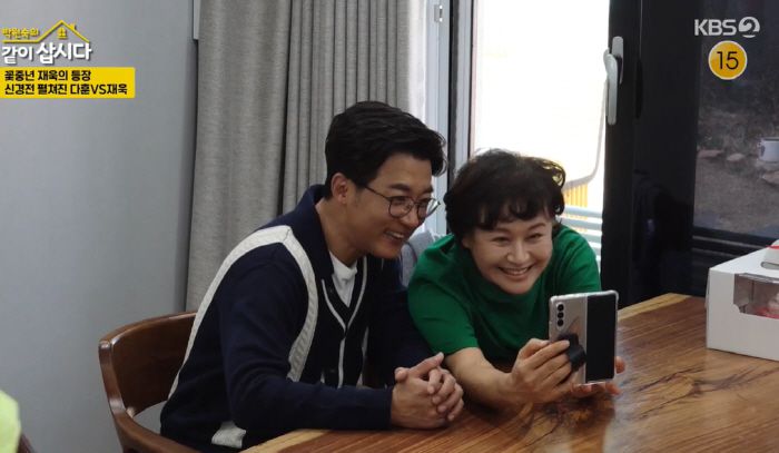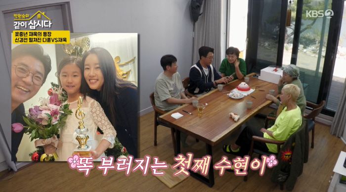첫째인 딸 수현이와 아들 도현이. 환한 얼굴로 아이들 설명을 하는 안재욱을 바라보는 박원숙에 윤다훈은 "지금 보면 큰 누나가 이렇게 한 사람을 향해서 몸을 돌려서 말하는 걸 처음 봤다"라고 질투했다.