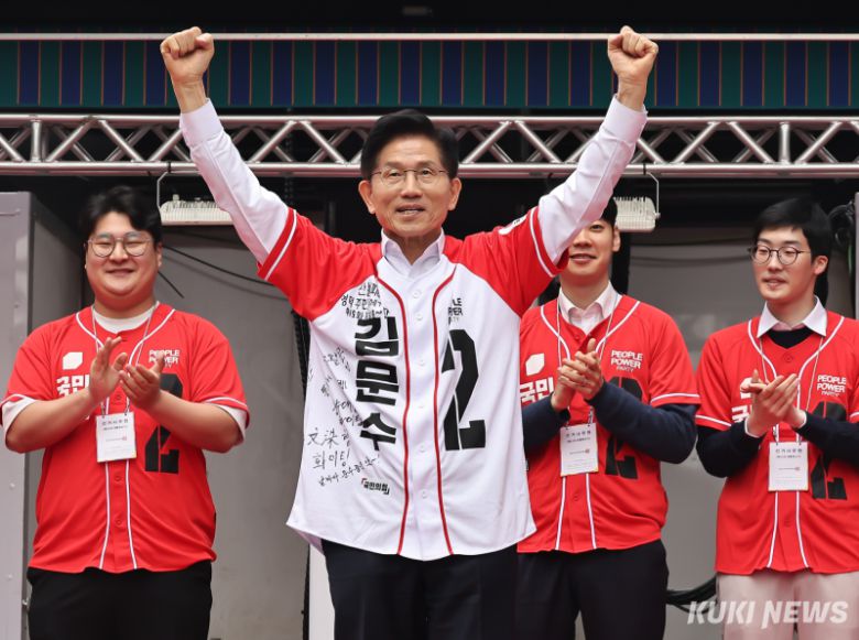 김문수 국민의힘 후보가 19일 서울 중구 청계광장 소라탑 앞에서 청년이 바라는 대한민국 정책공약을 발표하고 있다. 곽경근 대기자 |