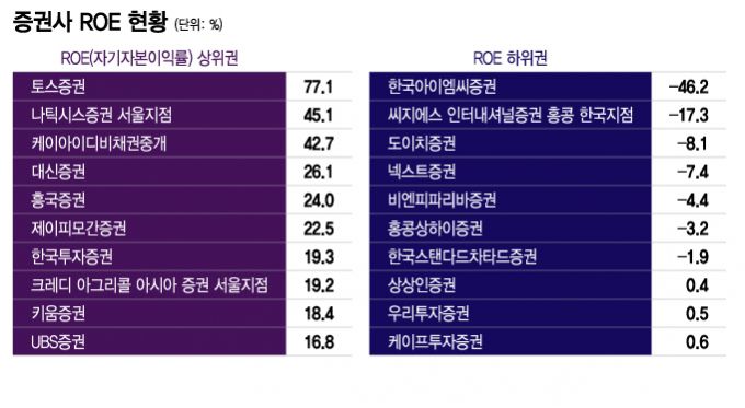 증권업계 관계자는 "전체 평균 ROE가 하락한 가운데 수익성은 양극화 양상이었다"라며 "증권사 운영에 있어 규모 못잖게 효율성과 혁신 역량이 중요해질 것"이라고 말했다.