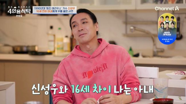 19일 방송된 채널A '절친 토큐멘터리-4인용식탁'에서는 가수 신성우가 16살 연하의 아내와의 러브 스토리를 공개했다.