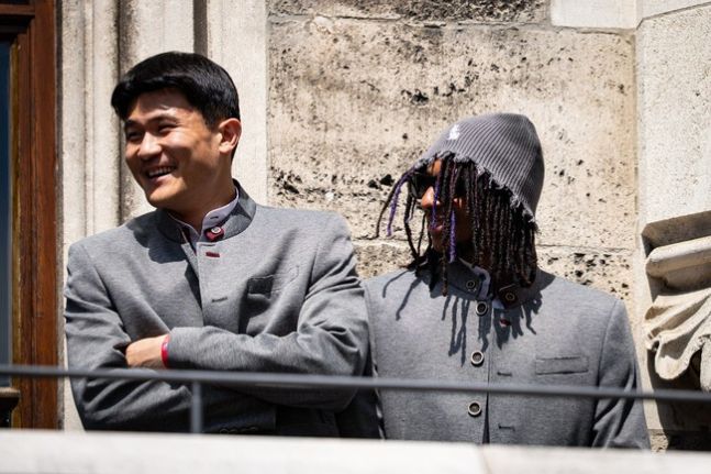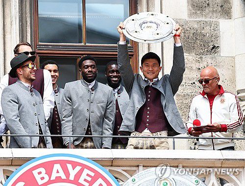 김민재 역시 팬들의 환호를 받으며 커리어 첫 분데스리가 우승을 자축했다. 전통 독일 의상인 회색 '레더호젠'을 갖춰 입은 김민재는 광장을 가득 메운 팬들 앞에서 분데스리가 우승 트로피인 마이스터샬레를 들고 다시 한 번 환하게 웃었다.