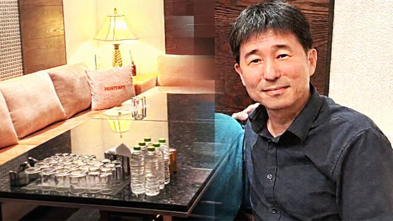 지 부장판사가 실내에서 일행 2명과 찍은 사진과 룸살롱으로 지목한 내부 공간의 모습입니다.