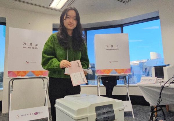 2006년생으로 올해 18살이 된 김씨는 초등학교 4학년 때 부모님을 따라 뉴질랜드로 이민을 갔다. 현재는 대입을 준비와 함께 변호사 사무실에서 일하며 다양한 경험을 쌓고 있다. ‘더 좋은 세상 뉴질랜드 한인 모임’에서 재외국민유권자 연대 관련 활동도 한다. 이날 투표장에도 이 모임에서 활동하는 이들이 김씨와 함께 했다. 그는 “어렸을 때부터 외국에 살며 한국의 ‘케이(K) 문화’뿐 아니라 역사적, 정치적 정체성을 품고 살고 싶은 마음이 컸다. 뉴질랜드에 있는 다른 한국인들도 다른 여러 도시에서 투표장으로 온다는 소식을 들었다”고 말했다.