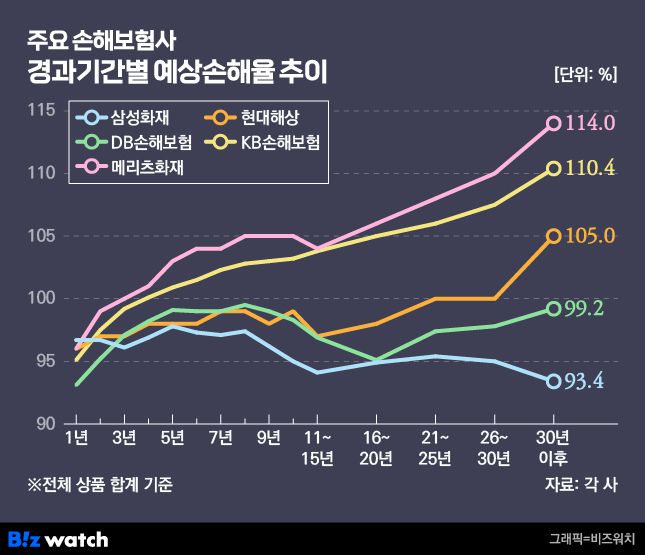 김 부회장이 "실제 손해율 대비 예상 손해율을 지나치게 낙관적으로 추정하면 당장의 이익을 실현할 수 있다"며 "이러한 방식으로 이익을 부풀리면 '장기 상품 수익성'이 높아 보이는 착시가 발생하고 가격 할인을 통한 매출 증대의 유혹을 일으켜 출혈 경쟁을 초래한다"고 지적한 것이 이 때문입니다.