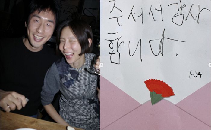 공개된 사진 속에는 공개연인 김나영의 아들 신우 군에게 어버이날 편지를 받은 마이큐의 모습이 담겼다. 신우 군은 마이큐에게 서툰 글씨로 "감사합니다"라고 적으며 카네이션 편지에 진심을 전했다. 김나영의 아들 신우, 이준 군과도 가족같이 지내는 마이큐가 받았을 감동이 느껴진다.