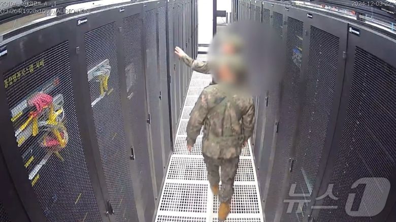 국회 행정안전위원회가 지난 3일 계엄령 선포 당시 선거관리위원회에 투입된 계엄군이 선관위 시스템 서버를 촬영하는 장면이 담긴 내부 CCTV를 6일 공개했다. (행정안전위원회 제공) 2024.12.6/뉴스1 |