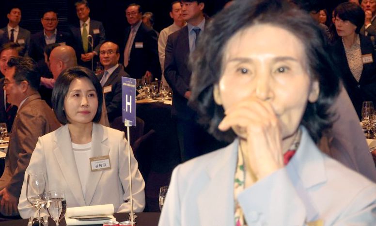 더불어민주당 이재명 대선 후보의 부인 김혜경 씨와 국민의힘 김문수 대선 후보의 부인 설난영 씨가 12일 서울 중구 신라호텔에서 열린 중앙신도회 창립 70주년 기념식에 참석하고 있다. 연합뉴스