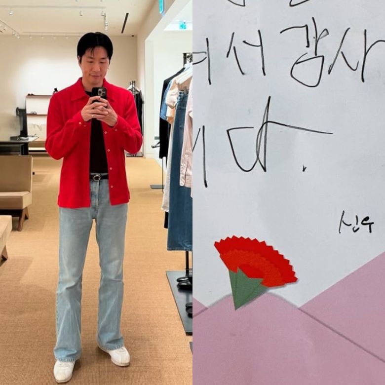 방송인 김나영과 공개 연애를 이어오고 있는 화가 겸 가수 마이큐가 김다영의 아들로부터 카네이션과 편지를 받았다.