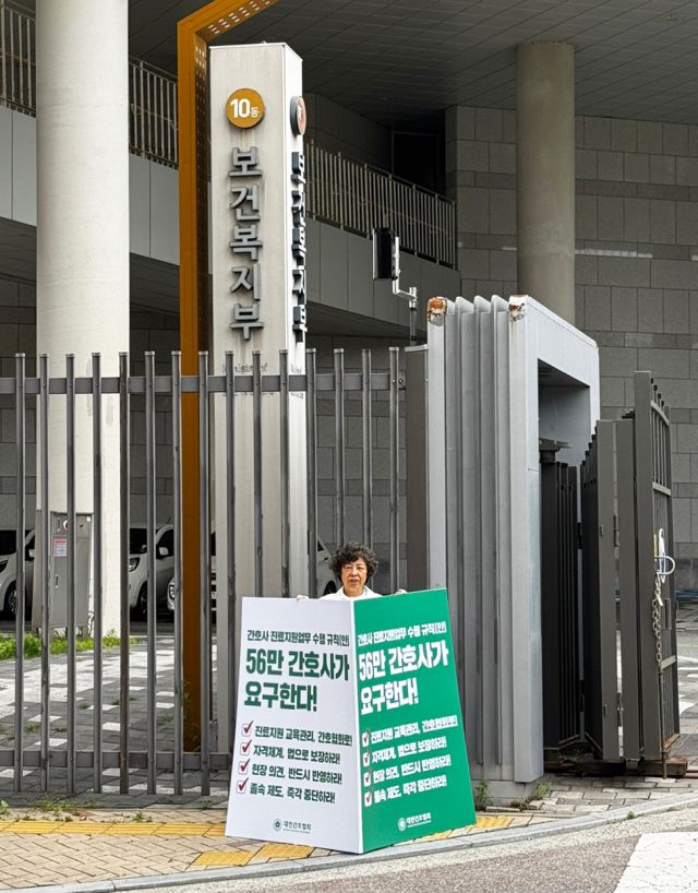 1인 시위 첫 주자로 나선 신경림 대한간호협회장은 이날 오전 8시 30분부터 '간호사 진료지원업무 수행 규칙(안) 56만 간호사가 요구한다! 진료지원 교육관리, 간호협회로! 자격체계, 법으로 보장하라! 현장 의견, 반드시 반영하라! 졸속 제도, 즉각 중단하라!'라고 적힌 피켓을 들고 복지부 세종청사 정문 앞을 지켰다. 오는 26일부터는 매주 대규모 집회를 열 예정이다.