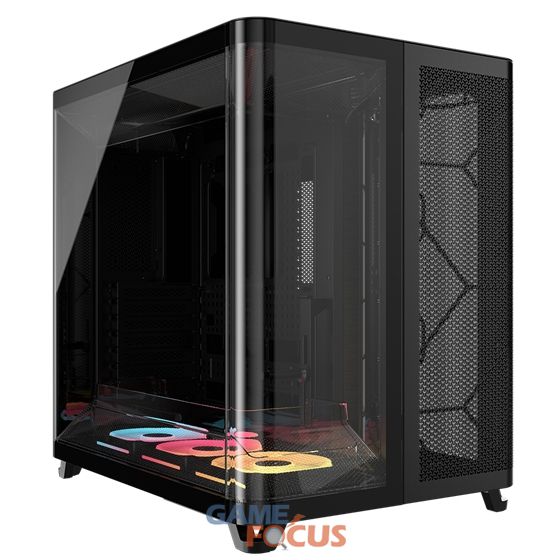 커세어 ‘프레임4500X 케이스(FRAME 4500X / 이하 프레임 4500X 케이스)’는 전면과 측면을 하나의 곡면 유리 패널로 감싸는 일체형 파노라마 디자인을 통해 고성능 하드웨어의 아름다움을 그대로 드러내는 케이스다. 사용자와 시스템 구성 요소 사이의 경계를 허물며, 시각적 개방감과 몰입감을 극대화한다. 역회전의 ‘리버스 로터(Reverse-rotor) RGB 팬’이 기본 탑재되어 내부로 시원한 공기를 유입하는 동시에 외부에는 화려한 조명 효과를 전한다. ‘프레임 시리즈’ 제품답게 모듈형 케이스 시스템(Modular Case System)을 지원해, 메인보드 트레이 교체, 측면 팬 마운트 브래킷 전환, PSU 슈라우드 제거 등 사용자의 취향에 따라 심도있는 맞춤형 설정이 가능하다. ‘프레임 4500X 케이스’는 최대 10개의 120mm 팬과 2개의 360mm 라디에이터까지 수용 가능한 내부 확장성과 강력한 냉각 성능은 물론 세련되고 깔끔한 외관을 동시에 갖췄다.