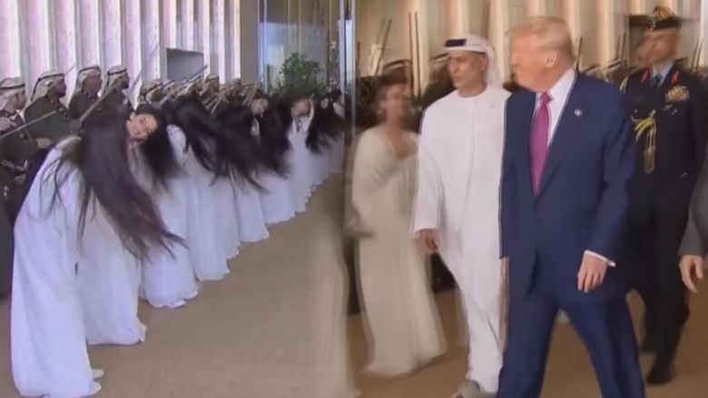 '중동 순방'으로 UAE(아랍에미리트)를 방문한 트럼프를 맞이하는 행사가 화제입니다. 음악 소리에 맞춰 '긴 머리' 소녀들이 머리를 휘젓기 시작한 건데요. 이는 '알 아얄라(Al-Ayyala)'로, 귀한 손님에게 영적인 축복을 내린다는 뜻을 담고 있습니다.